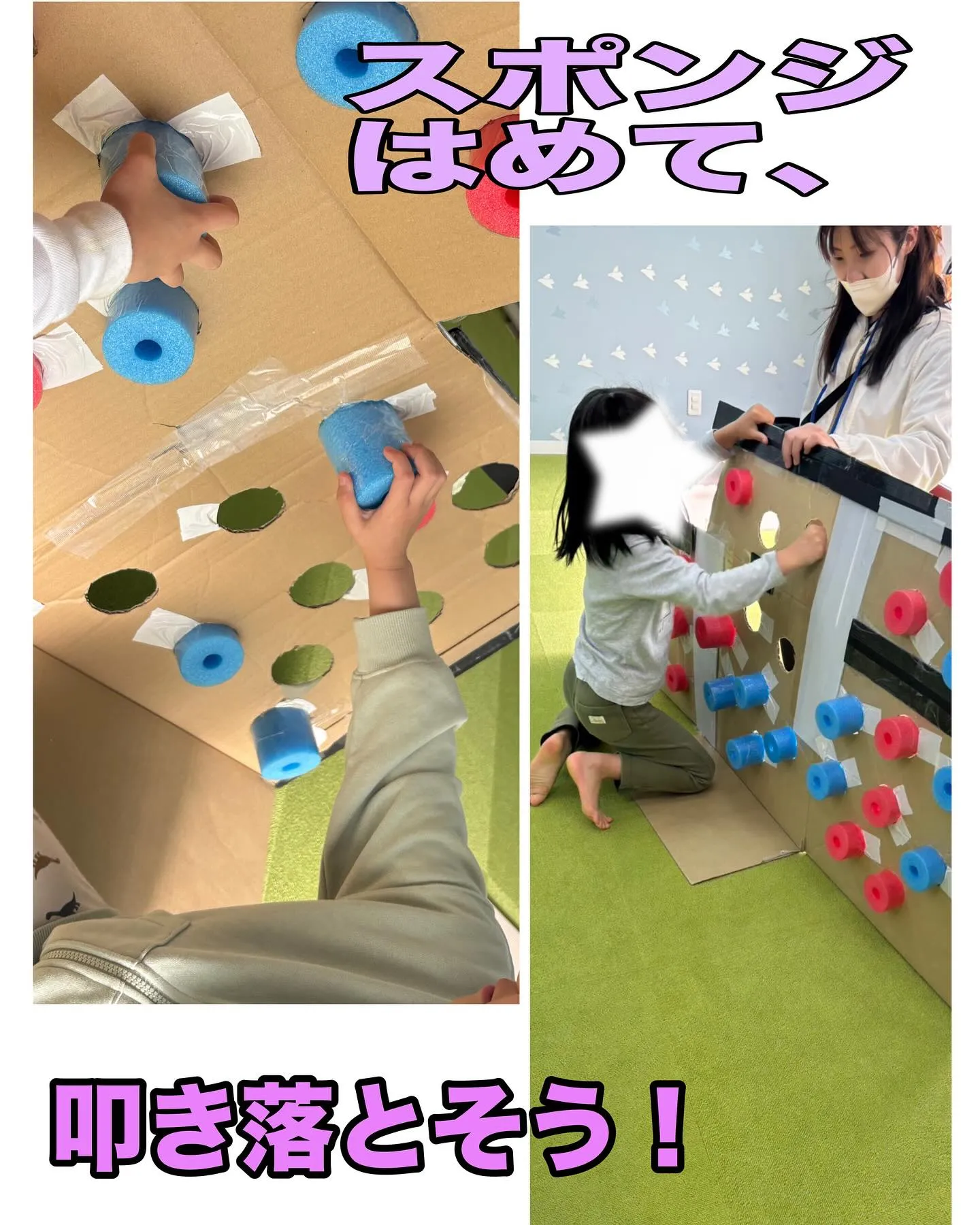ウィズユー富田林向陽台です。 ウィズユー富田林向陽台です。【運動あそびのようす】今日は子どもたちと一緒に、楽しく身体を動かしました!まずは「まるまるパニック」!スポンジボールを穴にはめて…パニックにならずに素早く叩いて…